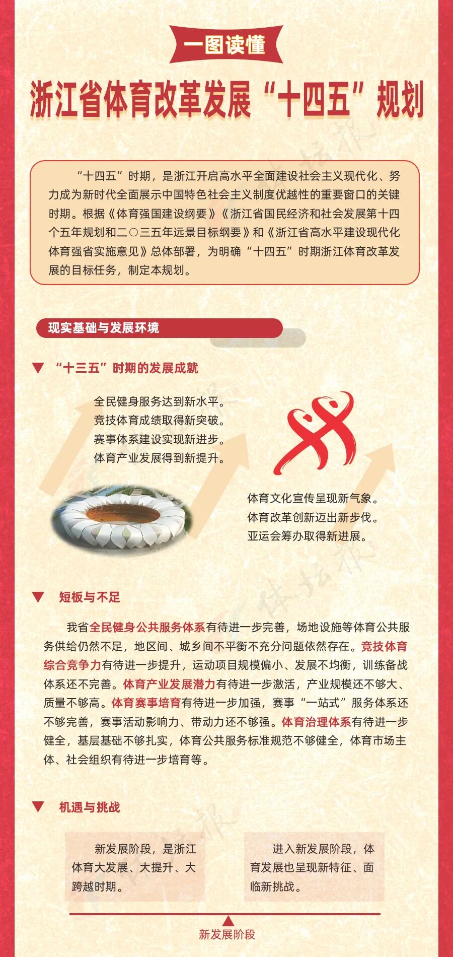 日前,省發展改革委、省體育局聯合印發《浙江省體育改革發展“十四五”規劃》(以下簡稱《規劃》)為未來5年描繪藍圖。